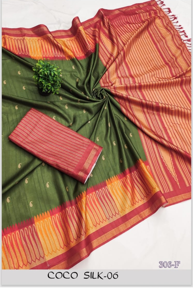 Elegant bamboo silk saree with a soft finish and graceful traditional appeal. Suitable for festive wear, family occasions, and everyday ethnic styling.
